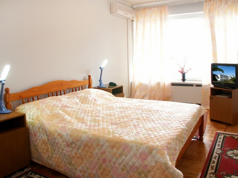 В номере: одна 2-спальная или две 1-спальные кровати, прикроватные тумбочки, телефон с междугородней связью, холодильник, телевизор, кондиционер.